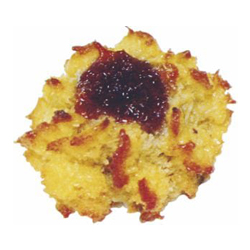Farinha, ovos, amido, margarina, açúcar, essência de baunilha, goiabada e gema de ovos.